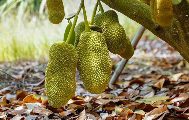 榴莲蜜生长条件需在年均温度27度至31度之间,对土壤的要求不高。榴莲蜜一年结一次果,2月开花,7月份以后即为采果收获期,单株年产量可达150斤以上。同时,榴莲蜜种植方便,管理粗放,基本无病虫害,一年仅需施肥2至3次,除草2次即可。
