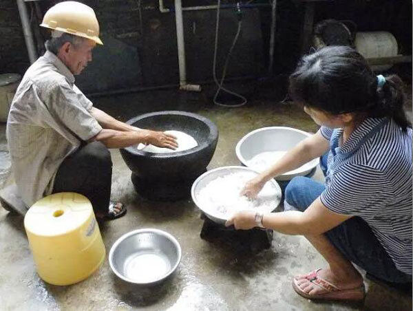 将熟透的糯米捣烂成团状可是一个力气活,特别是开始的时候只能用“张手”(木槌)加力碾压,不能用力舂打,很是耗费内功。